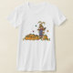 Este espantalho adorável está olhando sobre o remendo da abóbora.