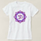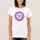 Om na mandala da flor de lótus em púrpura e branco. O centro da mandala muda de acordo com a cor da t-shirt escolhida.