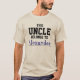 Este t-shirt customizável bonito deixará todos saber quem este tio pertence. Personalize o t-shirt adicionando seu nome na linha. Isto fará um grande presente para o Natal ou um aniversário. Mostre a seu tio algum amor feito sob encomenda especial com uma camisa que você se projeta! Mude a cor ou o estilo da pia batismal, e escolha seu próprio estilo da camisa.