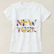 Texto colorido de na moda NOVA IORQUE feito com letras decorativas, pintado no estilo neoplasticismo. Uma elegante, na moda, positiva, chic e uma camiseta branca ou clara única para qualquer um. Não se esqueça de mudar o estilo, cor, tamanho ou sexo do roupa. Divirtam-se, amem-se, amem-se, e sejam felizes!