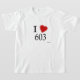 Eu amo os 603! É você de Manchester, New Hampshire? Você ama os 603? Ou você tem um amigo ou um membro da família que faça? Em caso afirmativo, isto "eu amo" o t-shirt que mostra que o amor para Manchester é exatamente o presente que você está procurando! As características de design a letra "mim" na rotulação preta com um coração vermelho na parte superior e no "603" na rotulação preta na parte inferior.