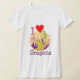 Camisa bonito dos dragões do amor de I. Um dragão alaranjado bonito dos desenhos animados com estrelas da cor, as asas e uma cauda grande da estrela e um vôo verde ateiam fogo ao dragão de respiração e dragão cor-de-rosa no céu contra uma cordilheira cor-de-rosa roxa e um coração vermelho grande com corações cor-de-rosa do amor e texto customizável "dragões" eu amo o T dos dragões. Este t-shirt adorável do dragão é inteiramente customizável, adiciona seus nome, texto e imagens! Um presente de aniversário original do dragão para o fã pequeno grande do dragão da fantasia!