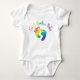 Eu sou um bebê que o creeper é um delicado, do arco-íris bodysuit 100% do algodão projetado especialmente anunciando e comemorando o nascimento de um nascer do bebê do arco-íris após um aborto ou uma perda da criança. O creeper da criança caracteriza um par de pegadas adoráveis, arco-íris-coloridas do bebê com os dedos grande do pé coração-dados forma debaixo do texto multi-colorido que diz que "eu sou um bebê do arco-íris." Este bodysuit olharia adorável usado em uma sessão fotográfica recém-nascida para anunciar um bebê novo do arco-íris!