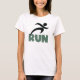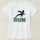 Se você estiver à distância correndo, seja apenas treinando para seu primeiro 5K ou você tiver realizado um 5K, 10K, meia maratona, ou maratona, você vai adorar nossas T-shirts RUN, capuzes, tampas de tanques, botões, canecas, guardas, e muitos outros itens de roupa de corrida com um corredor de silhueta preto e texto verde teal.