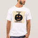 O jack-o-lanterno feliz festivo do Halloween se senta sobre um padrão digital personalizado de formas de giro de abstrato.