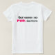 Camisa branca que diz "a fita adesiva real do uso dos homens…" na parte dianteira e "em mulheres reais use a fita adesiva COR-DE-ROSA" sobre traseira.