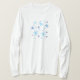 Esta camisa longa do pulôver da luva caracteriza um teste padrão abstrato dos flocos de neve azuis pastel delicados que flutuam em um fundo do branco nevado. Isto coordenará com muitas cores e é perfeito para a época natalícia.
