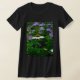 T-shirts Flor de Cone branca, flores roxas e mariposas