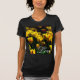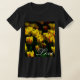 Flores de tulipas de cor amarela e vermelha em um leito floreado. Brincar de luz solar e fundo verde escuro. As tulipas parecem velas queimadas. A tulipa amarela significa esperança, alegria e sorriso brilhante e enigmático. Personalizável. Você pode alterar ou excluir o modelo Love.