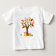 Bebê com uma raposa fofa amolecendo debaixo de uma árvore de queda.
