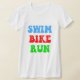 A bicicleta legal e do divertimento da natação funciona t-shirt e presentes do triathlon para o triathlete. Camisetas originais e coloridas do triathlete para a família inteira.