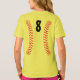 Uma t-shirt muito singular e atraente para as raparigas, para os jogadores de softball de passo rápido! As costuras de softball (pontos) correm para cima e para baixo nos lados, tanto na frente como no verso. Há também uma caixa de texto personalizada onde você pode digitar o número de camisa do jogador de softball. Se não quiser um número de camisa, basta apagar o texto do marcador de posição e deixar o vazio da caixa de texto.