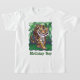 Camisas de Boazinho Personalizadas de Boas Festas de Aniversário Personalizadas do Parado Animal são para o seu lado divertido, com a nossa arte original de um tigre branco parado em pé numa selva verde sombria com um céu amarelo, verde e verde, uma bela e tortuosa borda verde escura. Vocês verão o giro tigre Bengala chegando e indo com este divertido trabalho de arte da cabeça do tigre bonitinho na frente e a cauda do tigre bobo nas costas com um lugar para adicionar a data da divertida festa de aniversário do tigre do seu filho. Pintado pelo talentoso artista infantil Traci Van Wagoner, nosso divertido animal selvagem com roupas de festa é perfeito para amantes de tigre de todas as idades. Junte-se à Parada Animal e jogue um balde cheio de animais com nossas cabeças divertidas e rabo-tigre na festa de aniversário. Raio!