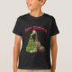 Adorável Girafa de Natal com seu Chapéu Santa e árvore de Natal decorada - ele está colocando a estrela em cima da árvore