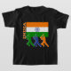 Três mostraram em silhueta jogadores indianos do grilo sob a bandeira indiana com o nome de país India ao longo do lado.