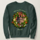 Esta camisola caracteriza uma grinalda lindo do Natal decorada rica com os cones do pinho do azevinho, os ornamento luxuosos, os sinos dourados, as fitas de seda, arcos vermelhos, e poinsétias. Personalize-a que usa seus próprios imagem e texto!