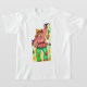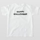 Um espantalho engraçado feliz aparece na frente desta camisa adorável de halloween. A saudação, "Feliz Dia das Bruxas" está nas costas. Trabalho de arte feito por Jo Ann Hayden