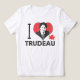 Eu Corto Trudeau. Eu Amo Justin Trudeau. Com uma Folha de Maple Canadiana vermelha. Primeiro-Ministro Liberal do Canadá. O rosto de Justin foi feito como ilustração gráfica e terminou com um olhar grunhido e angustiado.