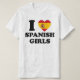 Ik houd van Spaanse meisjes. I heart Spanish girls. Met zwarte letters en het hart is met de Spaanse vlag. Als je gek bent op meiden die uit Spanje komen.