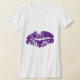 Impressão de lábios roxos numa camiseta branca