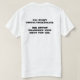 A parte traseira da camisa é alemão para: "Não fira o ambiente. Os patos não precisam o pão de você."