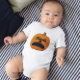 Bebê Jersey Bodytraje de um Jack o' Lantern com uma boca grande e infeliz rosto é o tema com esta abóbora laranja de Halloween. Projetado por Sandyspider Gifts. Ver todas as minhas lojas em http://bit.ly/SandyspiderStores