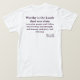 Jesus é digno no bolso dianteiro. Na parte traseira, a escritura lê "digno é o cordeiro que foi massacrado para receber o poder, e riquezas, e sabedoria, e força, e honra, e glória, e bênção."