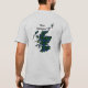 Esta camiseta divertida é impressa em ambos os lados! Na parte de trás está o mapa do Johnstone tartan com lema e na frente está o crachá do clã. Tradução do lema é "Nunca despreparado". Para demonstrar a sua lealdade ao clã, os clãs escoceses vestem tradicionalmente um crachá que representa a crista do seu chefe. Clansman era formado tanto por "nativos", que tinham uma relação direta com seu chefe com o sangue, quanto por quaisquer outros que haviam procurado a proteção do clã. Orgulho de ser escocês!