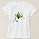 Esta camisa apresenta um alegre katydid. Katídides são insetos de tamanho médio a grande. Elas são geralmente verdes, às vezes com marcas marrons, e são camufladas para misturar-se com as folhas em que se alimentam. Suas longas antenas os distinguem dos gafanhotos. Vista de perto, parecem ser aliens do espaço!