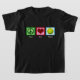Um sinal de paz, coração e uma bola de tênis em uma camiseta para crianças bonitinhas. Tênis do Amor pela Paz.