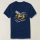 Camisa de T com um leão com asas, mais o roteiro latin que significa "após nuvens, sol."