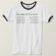A t-shirt chegou dentro do tempo anunciado e apresentou-se com todas as características que estavam anunciadas. Boa qualidade do tecido e bons acabamentos. O tamanho veio conforme o pedido. Perfeita! Fiz apenas uma pequena personalização no texto, e o mesmo assim veio, bem como todo o restante texto, devidamente impresso e exactamente como estava anunciado na página. Sem falhas!
