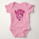 O crânio e os ossos cruzados são colocados num coração cor-de-rosa com a mensagem "LOVE".