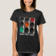 Conjunto de três semáforos com luzes verdes, amarelas e vermelhas acesas. As luzes vão de baixo à esquerda para cima à direita. Só para camisetas divertidas para mulheres. Personalizável. Você pode alterar ou excluir o texto modelo. Para produtos escuros ou negros.