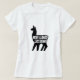 Mais lhamas! Menos drama! Design preto e branco. Texto em estilo cômico dentro a silhueta de lama.