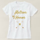 Um presente bonito para sua matrona da honra, este t-shirt do branco caracteriza o texto do ouro que indica a "matrona da honra" com setas do cruzamento que tem um coração no centro. Coloque sua ordem hoje!