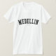 Verifique para fora este t-shirt de Medellin! É você de Medellin, Colômbia? Você tem um amigo ou um membro da família que amem Medellin, Colômbia? Em caso afirmativo, este t-shirt da "bandeira" é exatamente o presente que você está procurando! As características de design "Medellin" na rotulação preta arqueada na pia batismal clássica da faculdade.