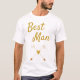 Um presente de excelente para o seu melhor homem, esta camiseta branca apresenta o "Melhor Homem" escrito em grandes textos de ouro. Os gráficos de seta de coração do ouro estão abaixo do texto. Compre sua camiseta hoje!