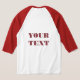 Um Raglan de Capa básica 3/4, branco e vermelho. Os tamanhos variam de S a 3X. Personalizável! . Sua escolha de 4 cores. Adicione seu texto ou imagem para um produto pessoal de um tipo.
