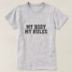 Você é uma feminista que acredita na positividade corporal? Você quer expressar seu amor próprio e confiança? Então esta camisa é para você! Esta camisa apresenta um slogan simples e sensível que diz que o seu corpo é o seu e que você faz as regras para isso. É feito de algodão acolhedor e respirável, com um ajustado unisexo e um design minimalista. Quer você esteja em uma academia, um spa, ou uma noite de encontro, essa camisa vai fazer você parecer legal e confortável e mostrar sua atitude. Peça o seu hoje e comemore o seu corpo! Esta camisa também faz um presente excelente para qualquer feminista que ama seu corpo em sua vida. Não perca esta oportunidade de pôr as mãos nesta camisa fantástica!