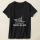 Diga-lhes o que você faz por diversão durante o inverno. Uma simples silhueta branca de um trenó com texto lendo "MEU OUTRO CARRO É UM CACHORRO".