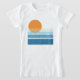 Esta design de camiseta abstrato de sol chic apresenta formas simples e é inspirada pelos belos nasceres do sol da costa da Califórnia. O sol laranja se sobrepõe a bares horizontais transparentes de amarelo-claro e azul - onde a luz encontra a água do oceano. Design também apresenta um acabamento angustiado "vintage", que lhe dá carinho e caráter adicionais. Não importa onde você esteja, este design lembrará você de sentar na praia observando o sol nascer acima das águas do mar azul.