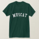 Verifique para fora este t-shirt de Muscat! É você de Muscat, Oman? Você tem um amigo ou um membro da família que amem Muscat, Oman? Em caso afirmativo, este t-shirt da "bandeira" é exatamente o presente que você está procurando! As características de design "Muscat" na rotulação branca arqueada na pia batismal clássica da faculdade.