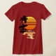 Gráfico surfando de um surfista e um nascer do sol sobre a água.