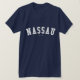 Verifique para fora este t-shirt de Nassau! É você de Nassau, Bahamas? Você tem um amigo ou um membro da família que amem Nassau, Bahamas? Em caso afirmativo, este t-shirt da "bandeira" é exatamente o presente que você está procurando! As características de design "Nassau" na rotulação branca arqueada na pia batismal clássica da faculdade.