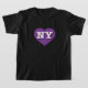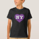 Esta camiseta apresenta um coração roxo vibrante contendo as letras maiúsculas, brancas, em negrito, NY, a abreviação oficial de Nova York, o estado do império.