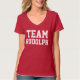 A camisa desportiva vermelha do futebol que diz a EQUIPE RUDOLPH na parte dianteira, e tem um nome e um número customizáveis na parte traseira.