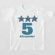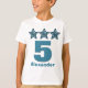5o O menino do aniversário Stars a CERCETA feita sob encomenda CAMO AZUL do nome V03 do número grande na ideia bonito do aniversário da camisa BRANCA com um número grande cercado por círculos do laço para o aniversário de um menino idoso de cinco anos especial. Adicione o nome da torta do cutie! Todo o texto é customizável.