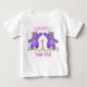 Ursos roxos de pelúcia vestidos com adoráveis coroas amarelas e flores cor-de-rosa, azuis e verdes, dançando entre as flores e segurando um punhado de balões coloridos com a palavra FELIZ. Esta camisa de aniversário de 1 ano trará um sorriso a uma garota especial no seu primeiro aniversario. Personalize com o nome dela para torná-lo especial. Design original do Anura Design Studio.