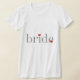 Texto da cinza Camisas design da Noiva, canecas, mousépias, sacos de tote, cartas, botões e muito mais para corresponder a cada membro da festa de casamento e aos membros da família. A design é um simples texto de cinza, as meninas têm pequenos corações vermelhos.